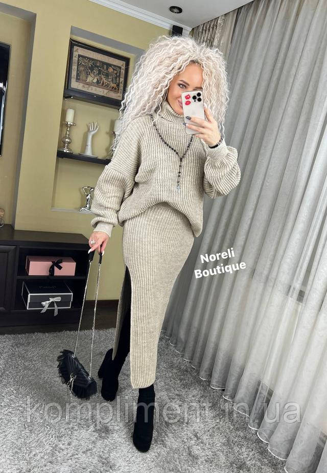 Модний в'язаний теплий жіночий костюм "Снижана", бежевий