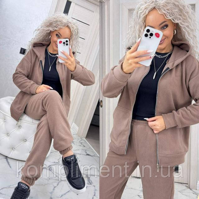 Жіночий модний утеплений спортивний костюм фліс, бежевий ST- 223