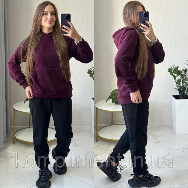 Жіночий модний флісовий спортивний костюм, бордовий SE — 226