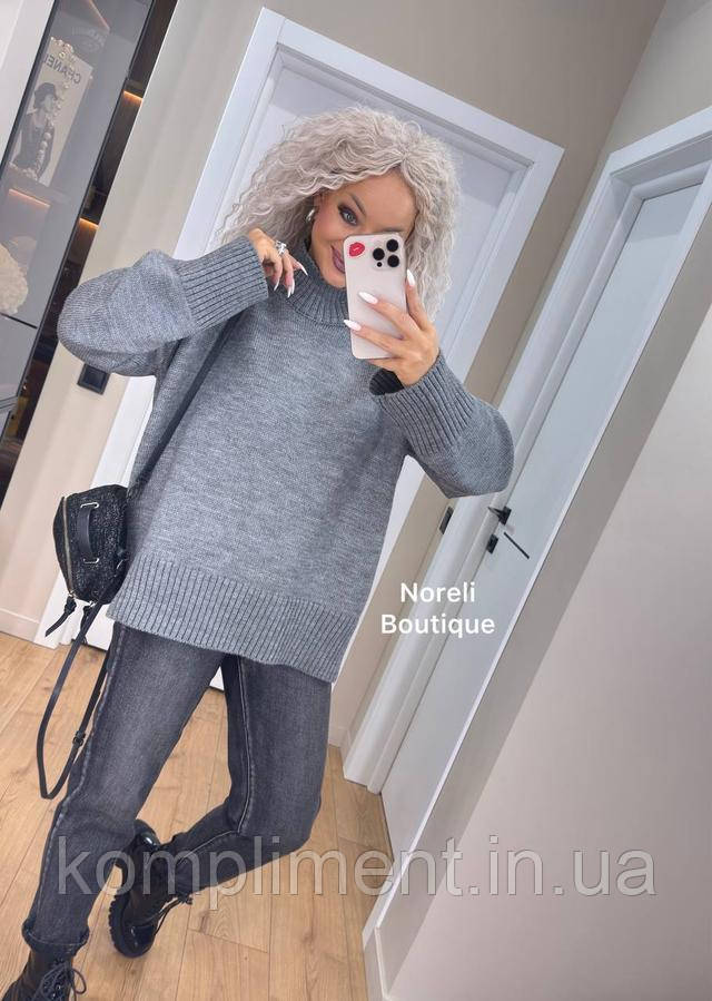 Женский мягкий вязаный теплый свитер под горло "Стойка", cерый
